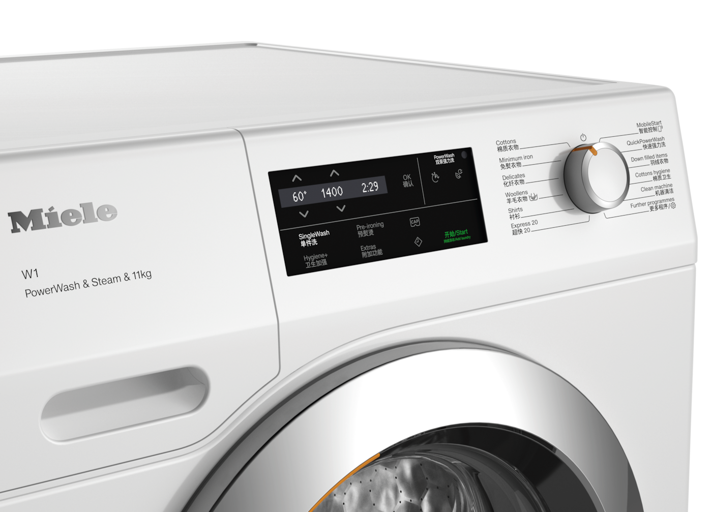 W1系列洗衣机: A I 11 kg I 1400 转/分 I 快速强力洗 I SteamCare 蒸汽护理 I Miele@home